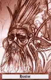 I amHastur! The Unspeakable One is the master of those who seek to unveil the mysteries of death. It is through meditation upon the Yellow Sign that the devotee of Hastur seeks transcendence to the city-realm of dim Carcosa. Through a complex series of visualizations that expand the aspirants void-consciousness, the final age will arise. Ruled by the ominous King in Yellow, a new stage of reality will come to fruition. Of the Olde Ones, Hastur is considered to be one of the most difficult to work with, his teachings being reserved exclusively for the Cthonian Adepts and Lords. |